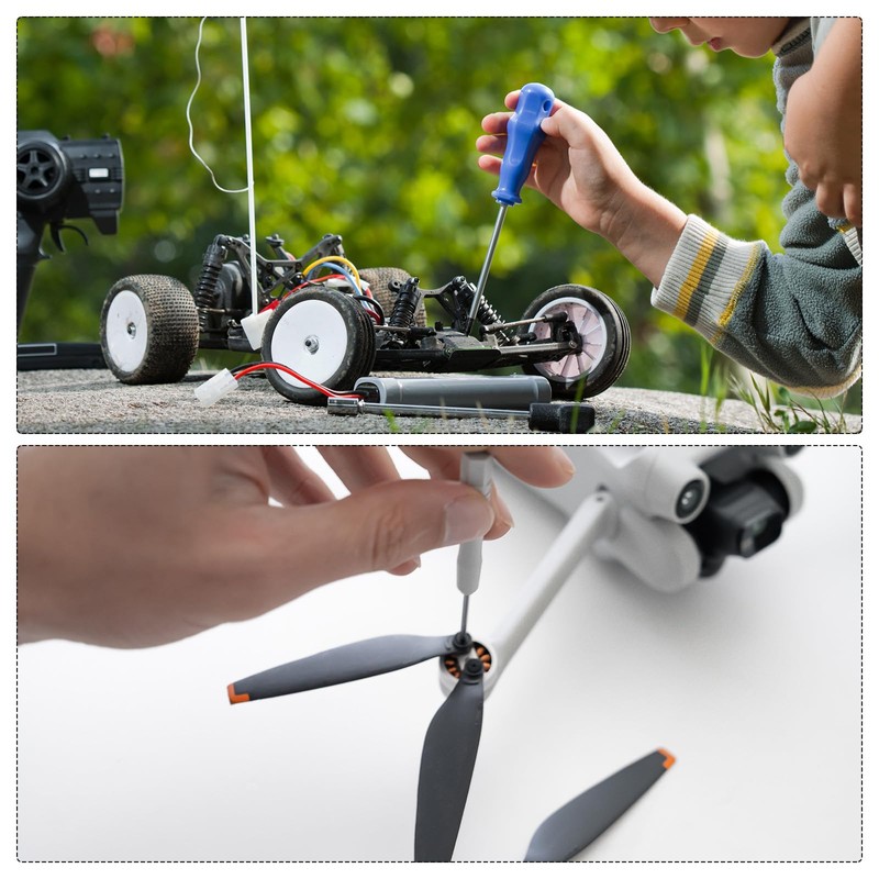 • Applications - The RC screwdriver tool is suitable for installing or removing aircraft models, RC helicopters, RC quadcopters, RC boats, RC cars, RC trucks, drones, robots, etc.