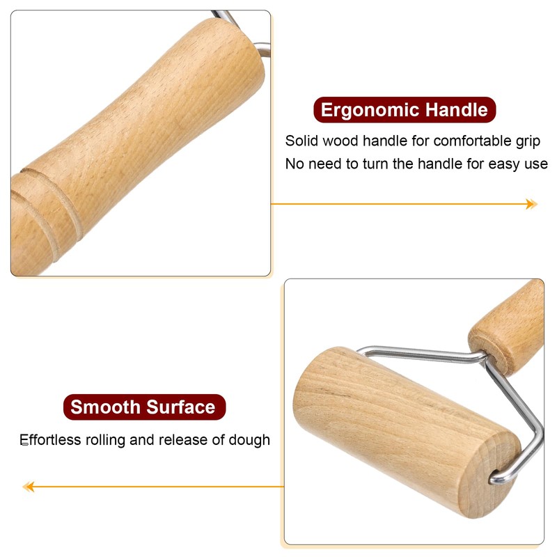 The smooth surface allows for effortless rolling and easy release of dough. The ergonomic wooden handle is comfortable to hold even long baking sessions.