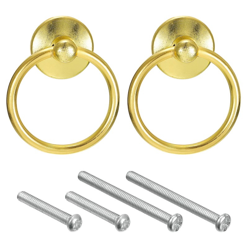 sourcing map 2Pcs Round Ring Pulls, Drawers Knobs Gold Circle Drawer Handles Single Hole for Dresser Cupboard Wardrobe