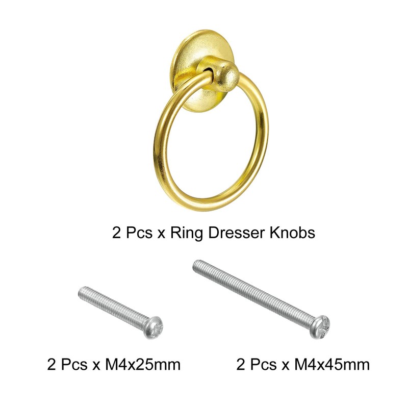 - Package & Size: 2Pcs x Ring Dresser Knobs, 2 Kinds of Matching Screws; Pull Ring ID: 35mm/1.38"; Screw Length: 25-45mm/0.98"-1.77"; Base Diameter: 25mm/0.98"; Mounting Hole Diameter: M4