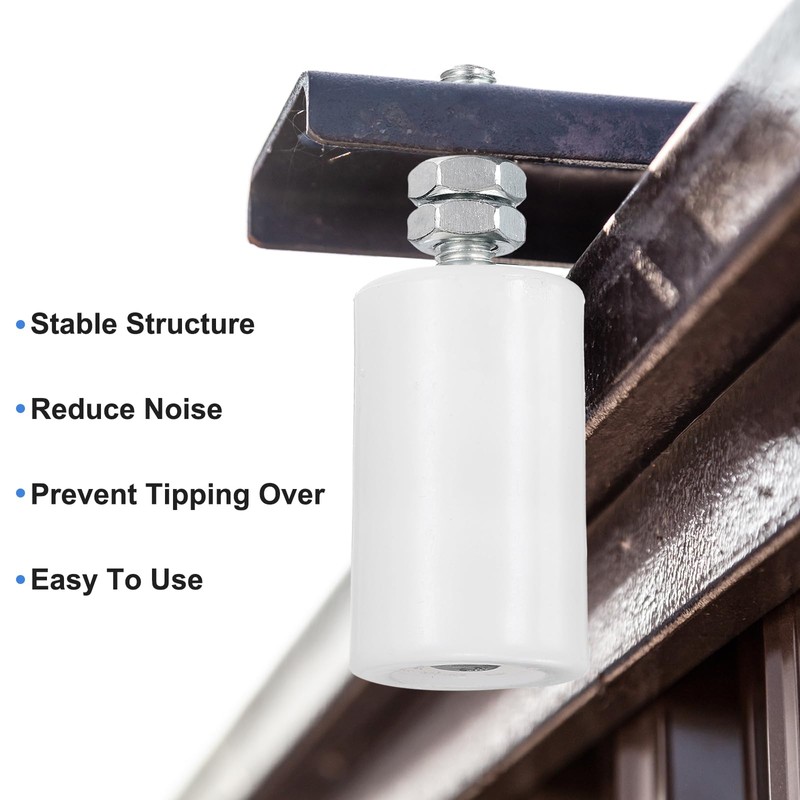 Easy to Install - The dual nylon rollers are easy to install and use. The guide rollers for sliding doors can be easily bolted to the bracket or rear post wall. The bracket can be flexibly adjusted to the rollers upward or downward, and ensure that they fit tightly with the door track, reducing swing and misalignment, and achieving stable and smooth movement of the sliding door
