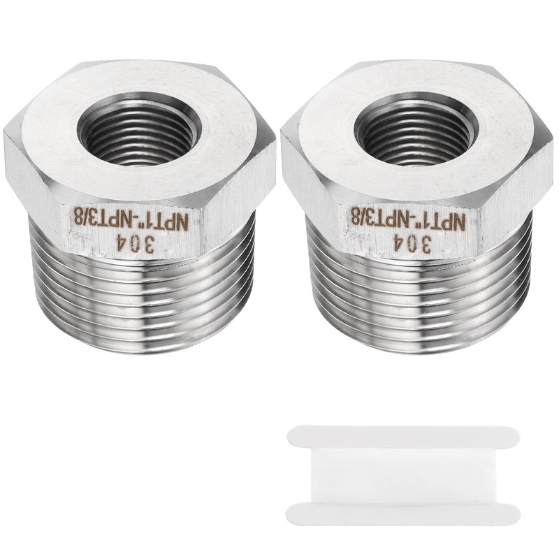 sourcing map 2pcs Stainless Steel Pipe Fitting 3/8" NPT Female x 1" NPT Male Reducer Hex Bushing Pipe Adapter Fittings Reducing Cast Pipe Connector for Water Oil Gas Tub
