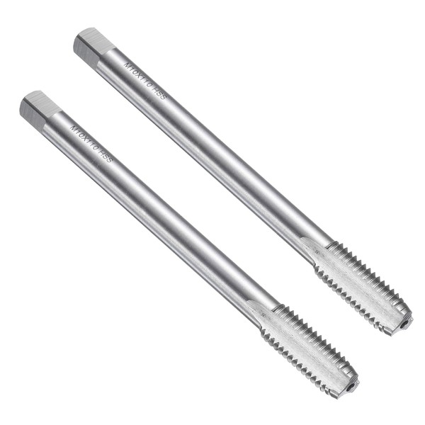 sourcing map 2pcs Straight Flute Thread Taps, M10 x 1.5 H2 110mm Extra Long Metric Screw Machine Tap Threading Tapping Tools, High-Speed Steel 6542 (HSS 6542)