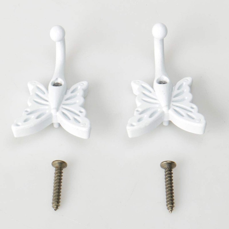 sourcing map 2pcs Wall Mounted Robe Hook Zinc Alloy Butterfly Shaped DIY Hooks Coat Towel Wall Clasp Bathroom Hanger with Screws White