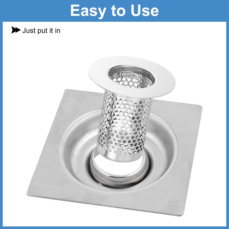 sourcing map 3 Pack Shower Drain Strainer, 2" x 2" 304 Stainless Steel Floor Drain Strainer Deep Sink Hair Catcher for Kitchen Bathroom Balcony Floor Drain, Fit Hole Size from 1.2" to 2"
