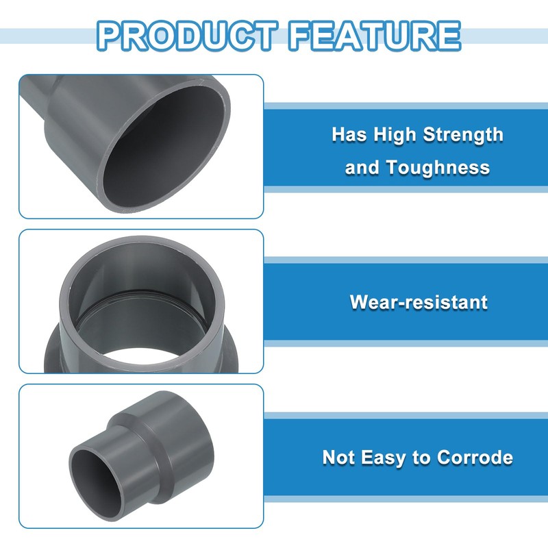 [Easy to Use] PVC reducer coupling adapter is easy to install, bonded with glue (not included here), apply glue inside and outside the pipe, insert the pipe to be connected into the PVC reducer adapter within one minute, and wait for it to solidify before use, best water supply after 24 hours.
