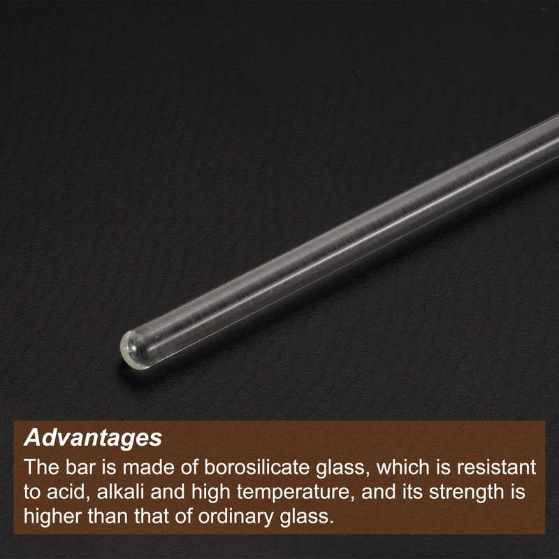 The rod is made of borosilicate glass, which has good resistance to acids, alkalis and high temperatures, and has a higher strength than ordinary glass.