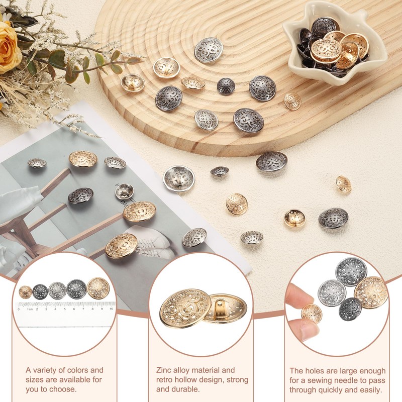 Round buttons are used to replace damaged or lost buttons on suits and other clothes. Metal buttons are suitable for various clothing sewing, card making, scrapbooking, crochet and other DIY craft projects