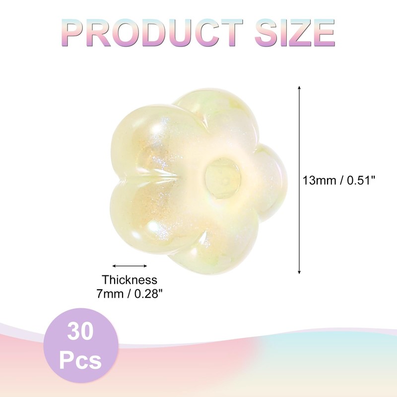 - Color: Green; Material: Plastic; Overall Size: 7mm x 13mm / 0.28" x 0.51" (L*W); Package Content: 30Pcs x Flower Acrylic Beads
