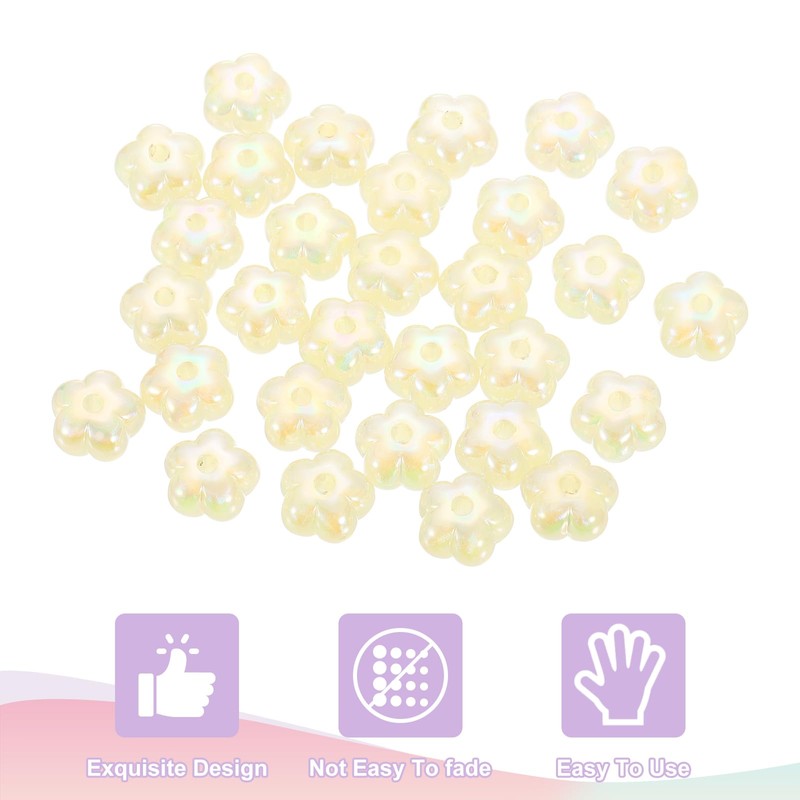 sourcing map 30Pcs Flower Acrylic Beads, 7x13mm Sparkle Flower Shape Acrylic Spacer Beads for DIY Crafts Making (Yellow)