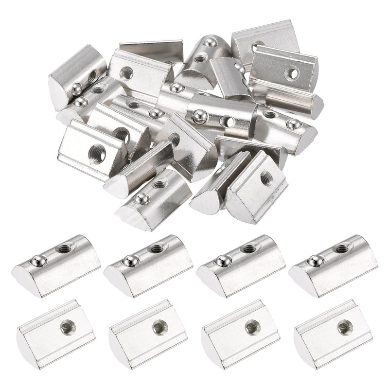 sourcing map 30Pcs M4 T Spring Nuts Fastener Carbon Steel Nickel Plated Half Round Roll in Spring T Slot Nut for t-Slot Aluminum Profile 3D Printer, CNC Router 4545 Series