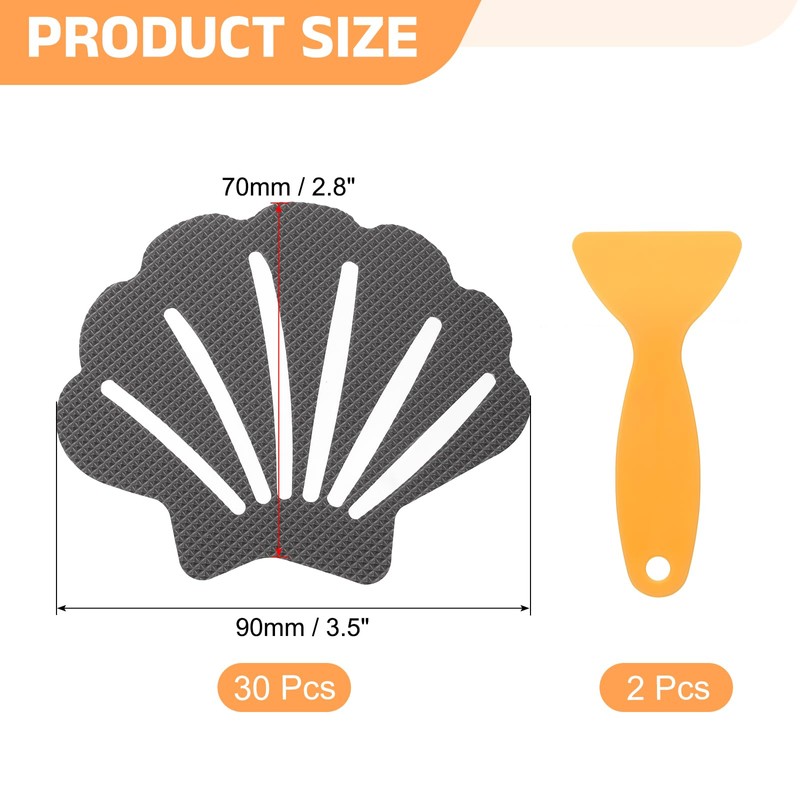 sourcing map 30pcs Non-Slip Bathtub Stickers, Anti-Slip Shower Stickers Showers Treads Shell Shaped Appliques with 2 Pcs Scraper for Bath Tub Shower Stairs, Grey