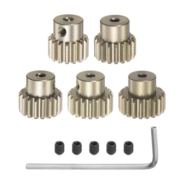 - Package Content: You will receive 5pcs (16T 17T 18T 19T 20T) pinion gear, 5pcs grub screws, and a hex key.