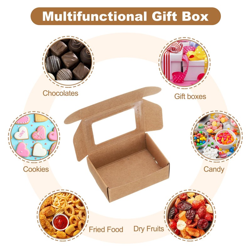sourcing map 32Pcs Kraft Soap Boxes, 3.3" x 2.4" x 1.2" Mini Kraft Treat Box with Clear Window for Candy Cookie Gift Party Favor Treats Packaging (Light Brown)
