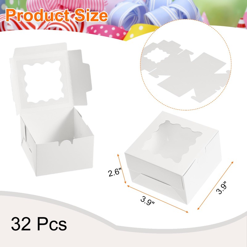 sourcing map 32Pcs Soap Packaging Boxes 3.9x3.9x2.6 Inch Kraft Soap Box with Window Mini Soap Present Treat Gift Box for Bakery Candy Packaging Jewelry Display (Flower Shape, White)