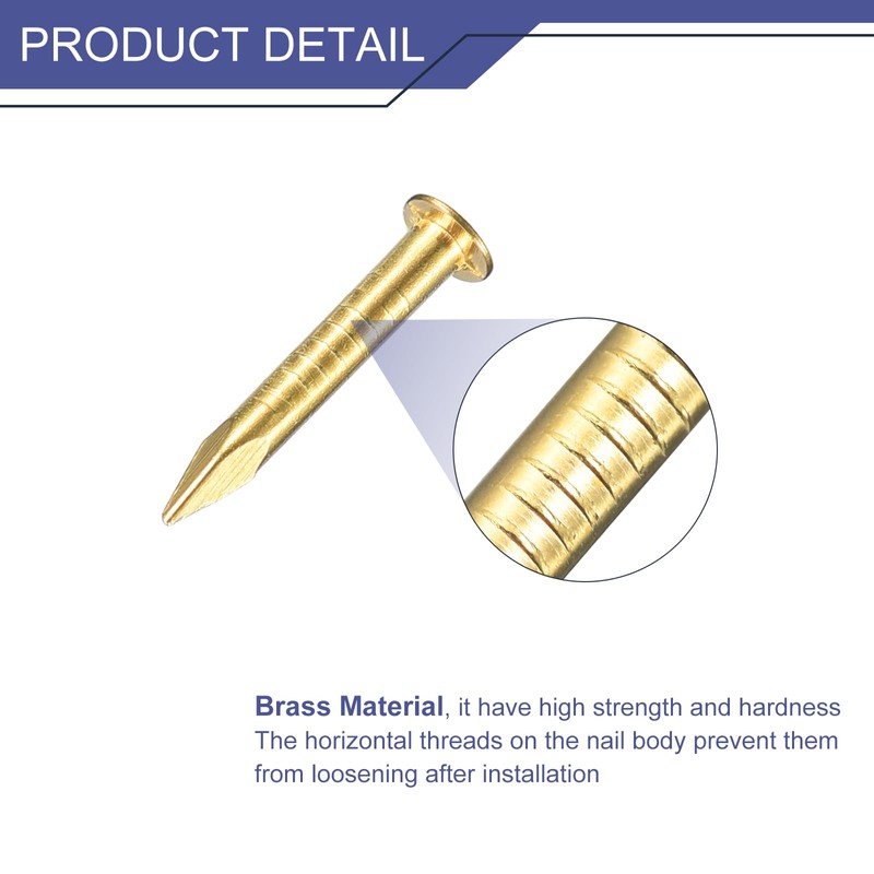 • [Features] Tiny brass nails are compact and portable, and the horizontal threads on the nail body prevent them from loosening after installation. With precisely designed round heads, uniform force, and ease of carrying, these nails provide reliable and firm stability for woodworking, carpentry, and DIY projects