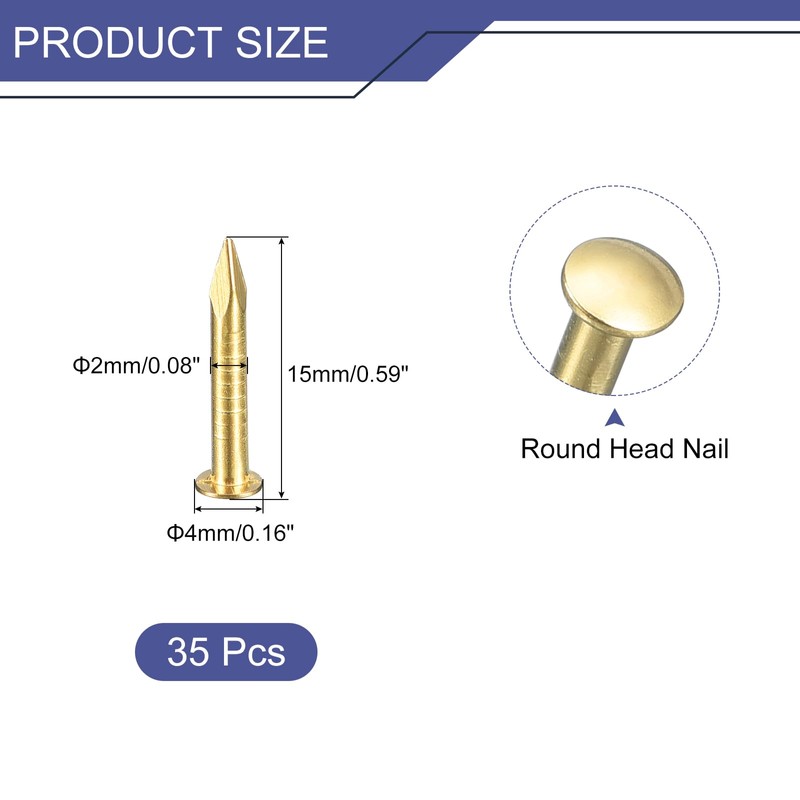 • [Small Tiny Nails] The head diameter of the brass nails is 4mm/0.16inch, and the total size is 2x15mm/0.08x0.59inch (D*L), you will receive 35 pcs small tiny nails, which can meet your daily needs.