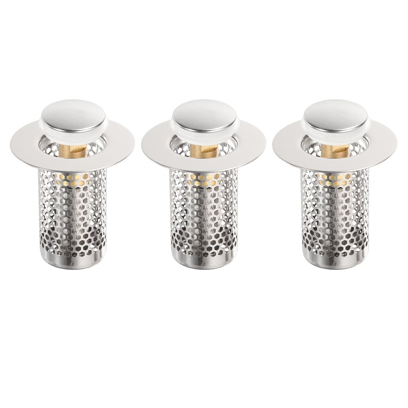 sourcing map 3Pcs Bathroom Sink Drain Strainer, Sink Stopper Hair Catcher with Removable 304 Stainless Steel Filter Basket 2" x 2" Fit 1.3"-1.8" Hole for Bathroom Sink Stopper Replacement