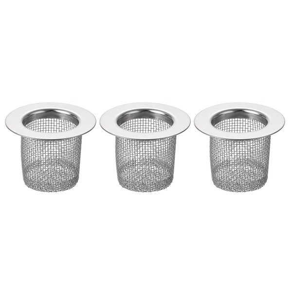 sourcing map 3Pcs Bathroom Sink Strainer, Fit for Diameter 1.38"-2" Drain Hole, 40mm/1.57" Deep Stainless Steel Sink Strainer for Shower Drain and Floor Drain