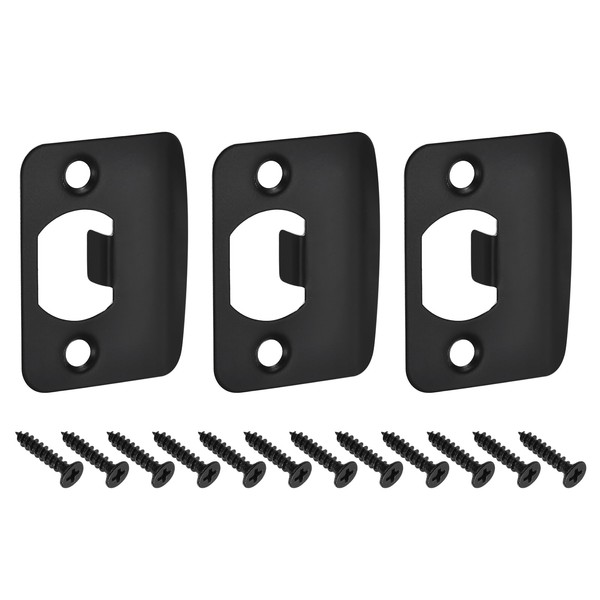 sourcing map 3Pcs Door Strike Plate, 57mm x 45mm Stainless Steel Latch Deadbolt Replacement Lock Strike Plate for Door Frame Door Jamb Reinforcement, Black