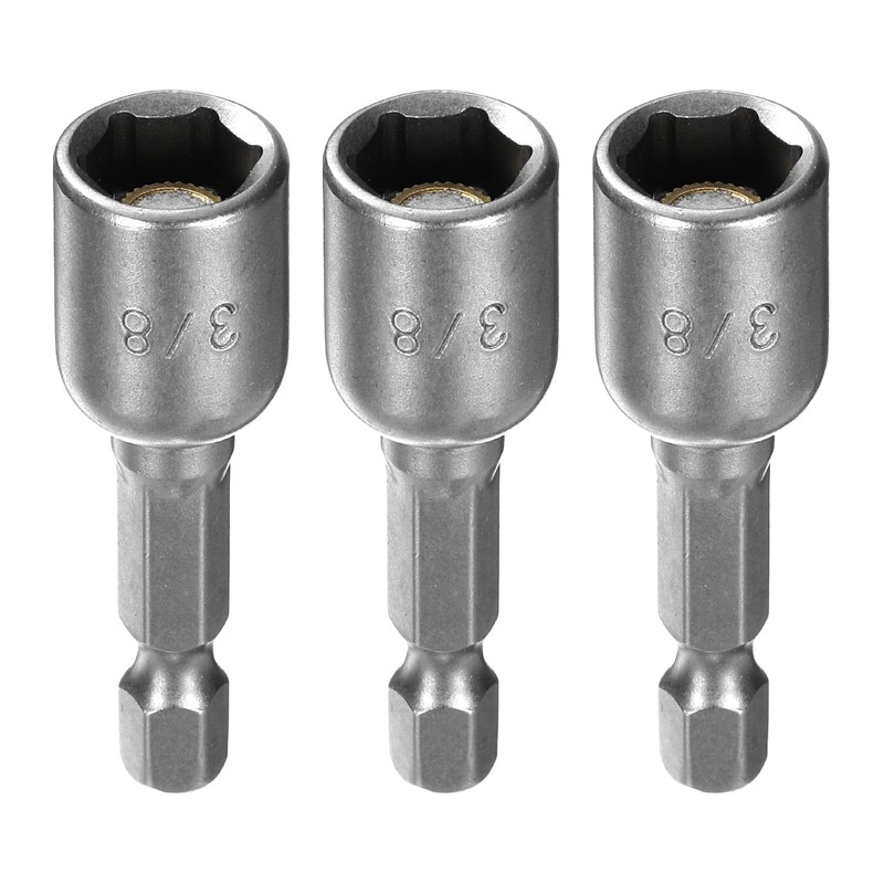 sourcing map 3pcs Hex Nut Driver Drills Bit 3/8" 6-Points Socket 1/4" Hex Shank 1.9" (48mm) Long Magnetic Nut Setter CR-V Steel Quick-Change Nut for Power Drill Impact Drivers