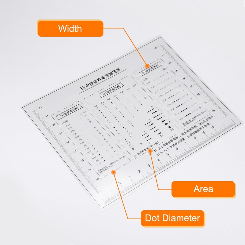 - Features - Transparent film SEC pattern used for quality inspection and defect size estimation, with high accuracy, excellent transparency, minimal error caused by temperature, and long-term use. In addition, it has a protective film on the surface, which is waterproof and scratch-resistant to avoid inaccurate scales.