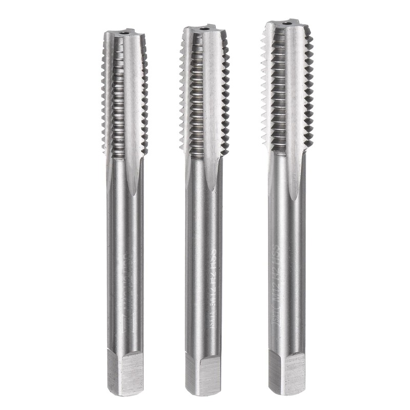 sourcing map 3pcs Metric Hand Tap Set, M12 x 1.75 Taper/Plug/Bottom Thread Screw Taps, High Speed Steel Hand Threading Tapping Tool Kit