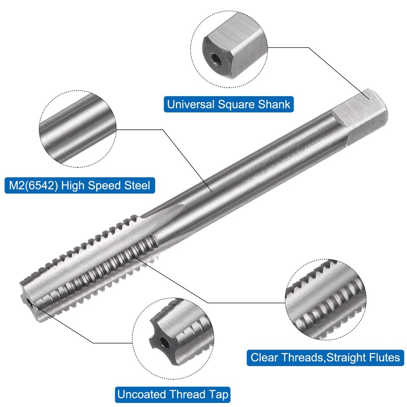 - Widely Used: Hand tap set is used to re-thread damaged or jammed threads, or to create new threads. Suitable for tapping through or shallow holes in mild steels, aluminum, iron, copper, hard plastic. Provides fast downward chip removal for efficient threading.