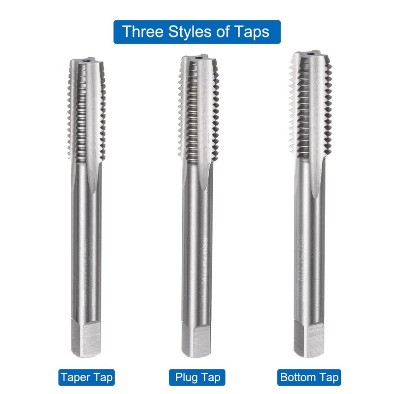- Three Styles: Taper Tap: Start the thread and guide it into the workpiece, commonly used when tapping through holes. Plug Tap: Creates deeper threads than taper taps, suitable for through-hole and blind-hole applications. Bottom Tap: Generate threads close to the bottom of a blind hole.