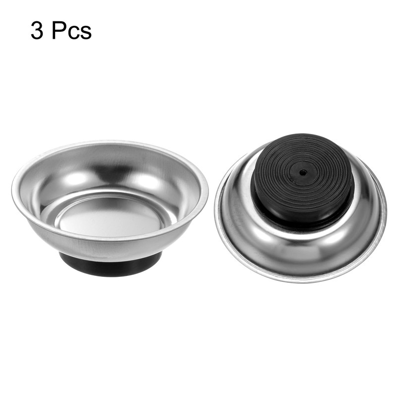 sourcing map 3pcs Round Magnetic Tray 3" x 1" Stainless Steel Magnet Tool Tray Parts Holder for Socket Screw Nuts Bolts Pin Washers Metal Parts