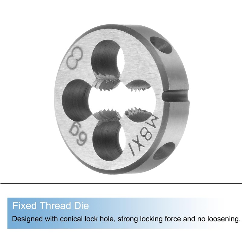 - Features: Tap & die with clear threads without burrs, right hand tapping direction. Thread die designed with conical lock hole, strong locking force and no loosening. Uncoated tools feature just the base substrate, great for a wide range of applications.