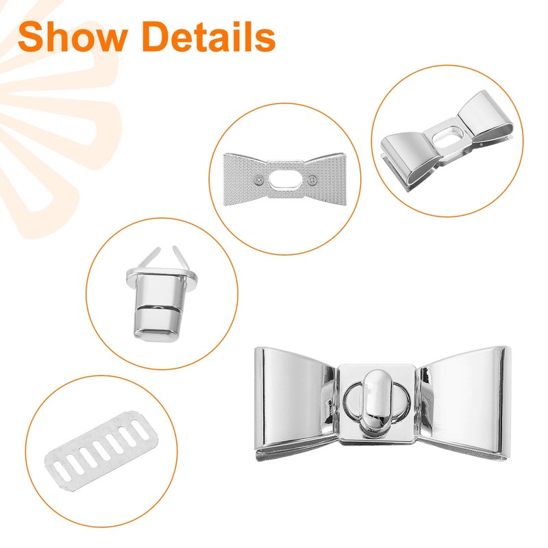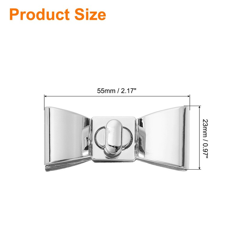 sourcing map 3Set Turn Lock Clasp, Bowknot Press Lock Clasp Closure Twist Turn Locks Hardware Buckle Fasteners for Purse Leather Bag Handbag Making Accessories (55x23mm, Silver)