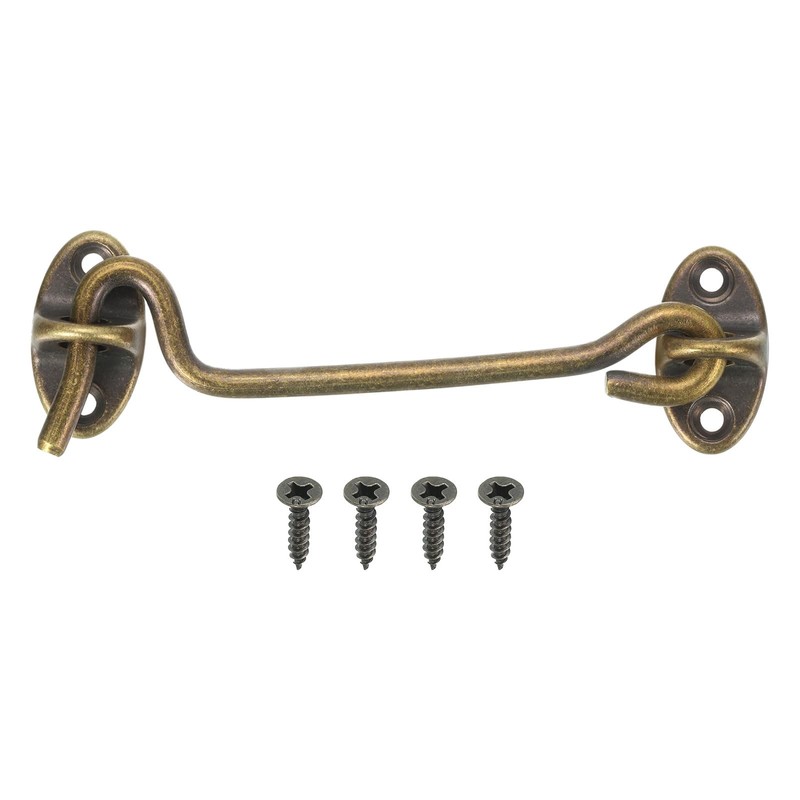 sourcing map 4" Hook and Eye Latch, Barn Door Lock Brass Cabin Hook Privacy Door Gate Hooks for Window Sliding Door Fence Shed, Bronze