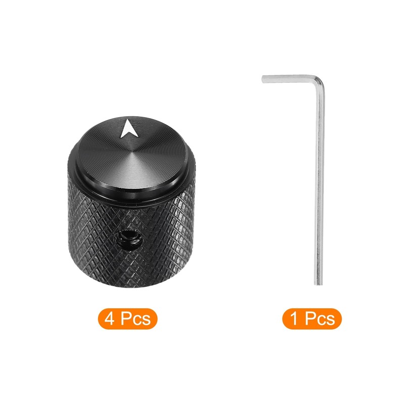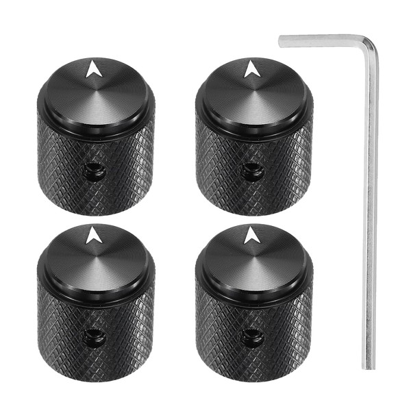 sourcing map 4 Pcs Aluminium Potentiometer Knobs, 1/4"(6mm) IDx5/8"(15mm) ODx5/8"(15mm) Height Universal Volume Tone Control Knobs for Guitar, Bass, Arrow Indicator, Black