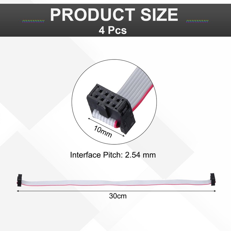 sourcing map 4 Pcs IDC Flat Ribbon Cable, 2.54mm Pitch 10mm Width 30cm Long 8 Pin FC to FC Flat Ribbon Connector Jumper Wire for PC, LED Displays