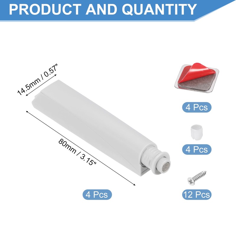 sourcing map 4 Pcs Magnetic Push Latches for Cabinet Door, 3.15x0.57 Inch Push to Open Door Latch Cabinet Hardware, Hidden Door Release Drawer Pull on Closet Touch, Plastic Grey 80x14.5mm