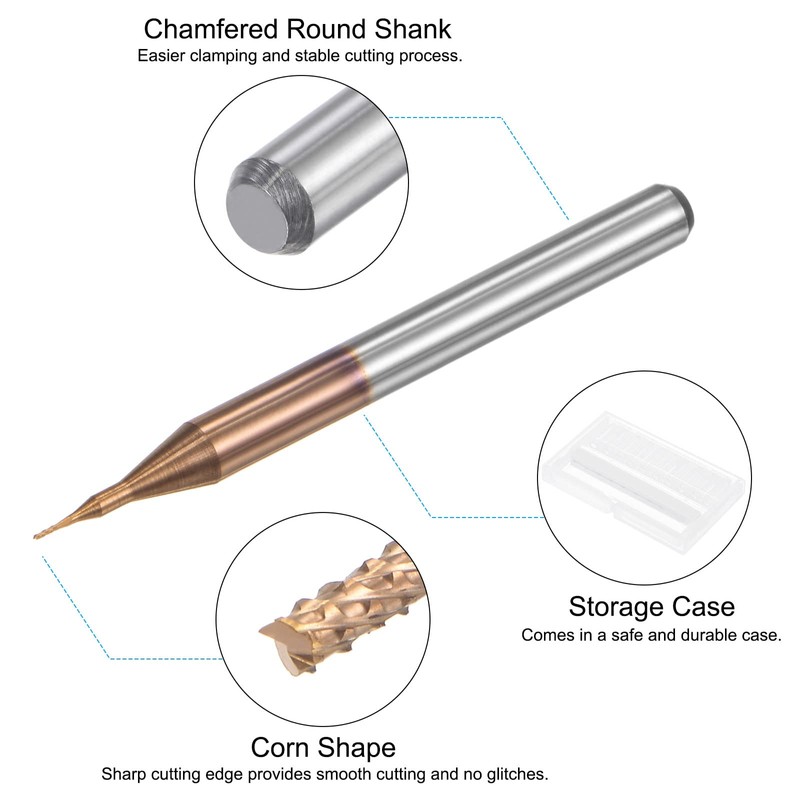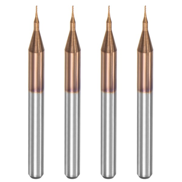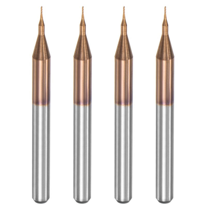 sourcing map 4 Piece End Mill CNC Cutter Titanium Coated Tungsten Carbide Engraving Cutter Set for PCB Plastic Wood 0.3 mm x 1.5 mm