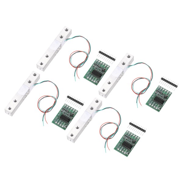 sourcing map 4 Set Digital Load Cell Weight Sensor 5KG + HX711 Module Weighing Sensor 24 Bit Precision A/D Dual-Channel for DIY Portable Electronic Kitchen Scale Kit