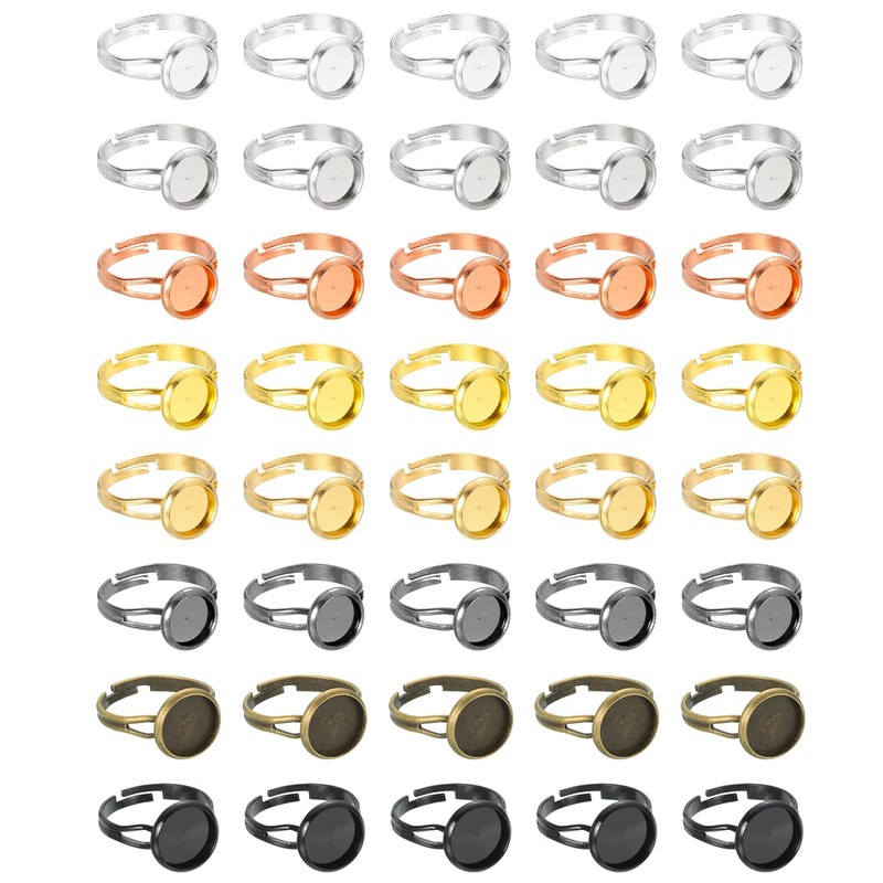 - These ring bases are flat and bezel-tray designed, great for holding cabochon, DIY carvings, and other jewelry elements. They come in many colors, providing a versatile foundation for various jewelry-making projects.
