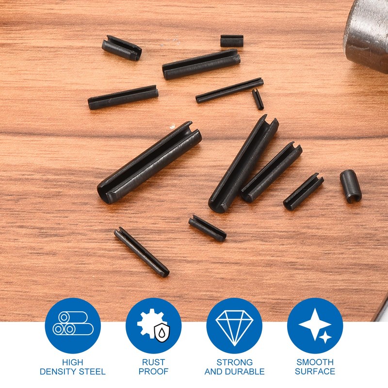 Wide Applications: Slotted spring pins are suitable for industrial production, or home improvement such as fixing mechanical installations, constructions, furniture, and maintaining fixtures and appliances, cars, trucks, boats, etc