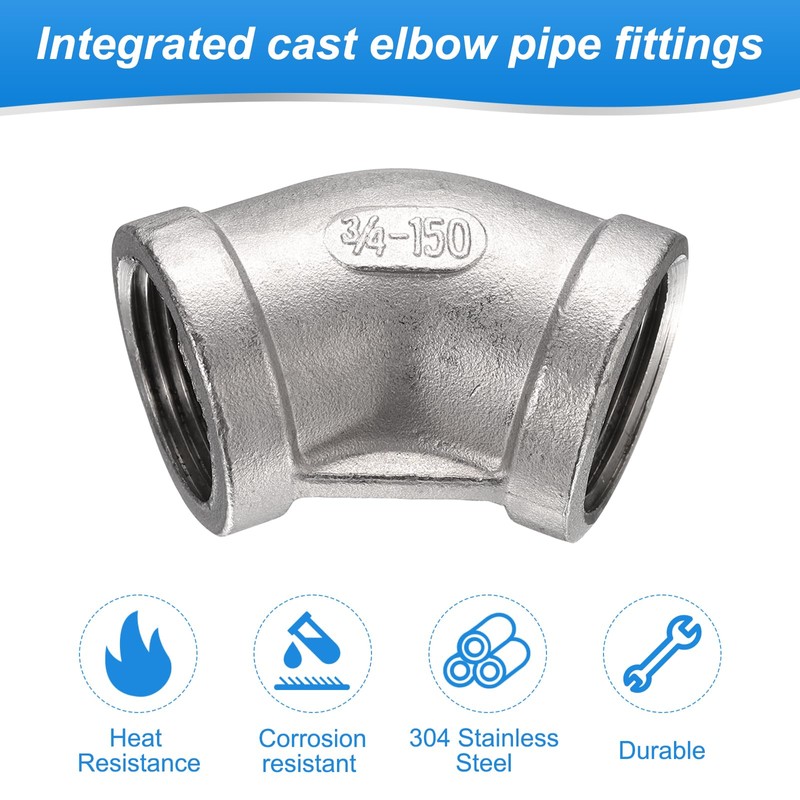 sourcing map 45 Degree Elbow Cast Pipe Fitting 3/4" NPT Female 304 Stainless Steel Elbow Fitting Thread Connector for Water Fuel Air Plumbing Applications