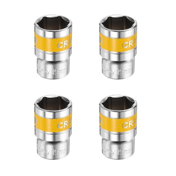 sourcing map 4pcs 1/2" Drive 6 Points Socket 19mm Metric Shallow Impact Socket CR-V Steel Flip Socket Spindle Axle Nut Impact Socket for Home Auto Hex Nuts Bolts Repair, Silver Yellow