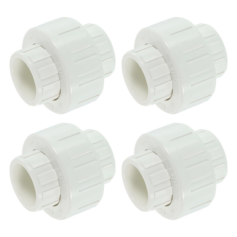sourcing map 4Pcs 1/2" UPVC Union Coupling Pipe Fitting (Socket x Socket), UPVC Union Coupling Adapter, Schedule 40 EPDM O-Ring for Irrigation, Pool System, Indoor Plumbing Project (White)