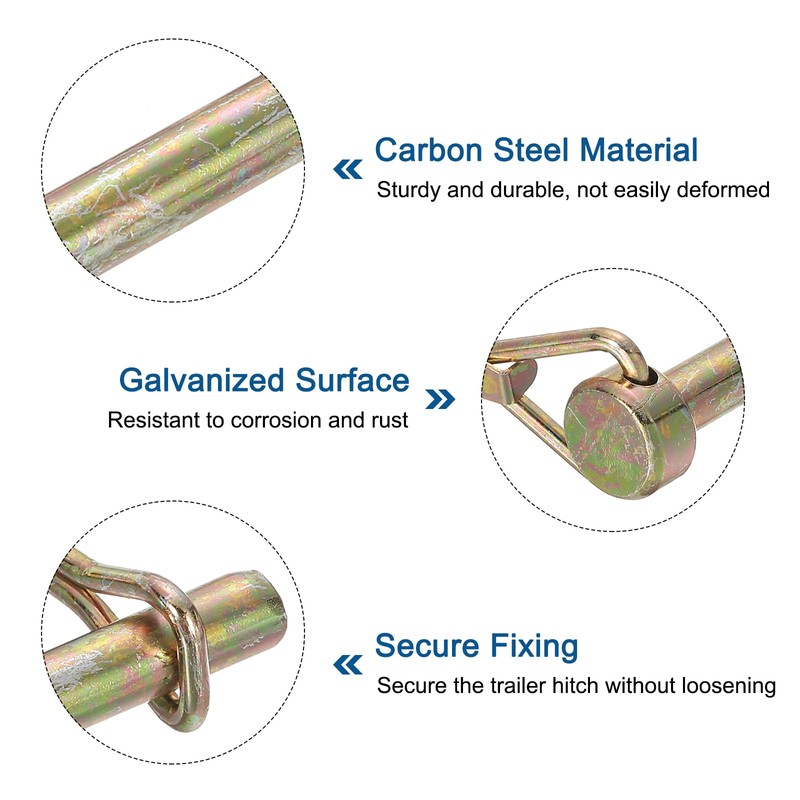 - [Material] Linch pin is made of carbon steel material, with a galvanizing process, sturdy and durable, not easily deformed, resistant to corrosion and rust, and suitable for long-term outdoor use.