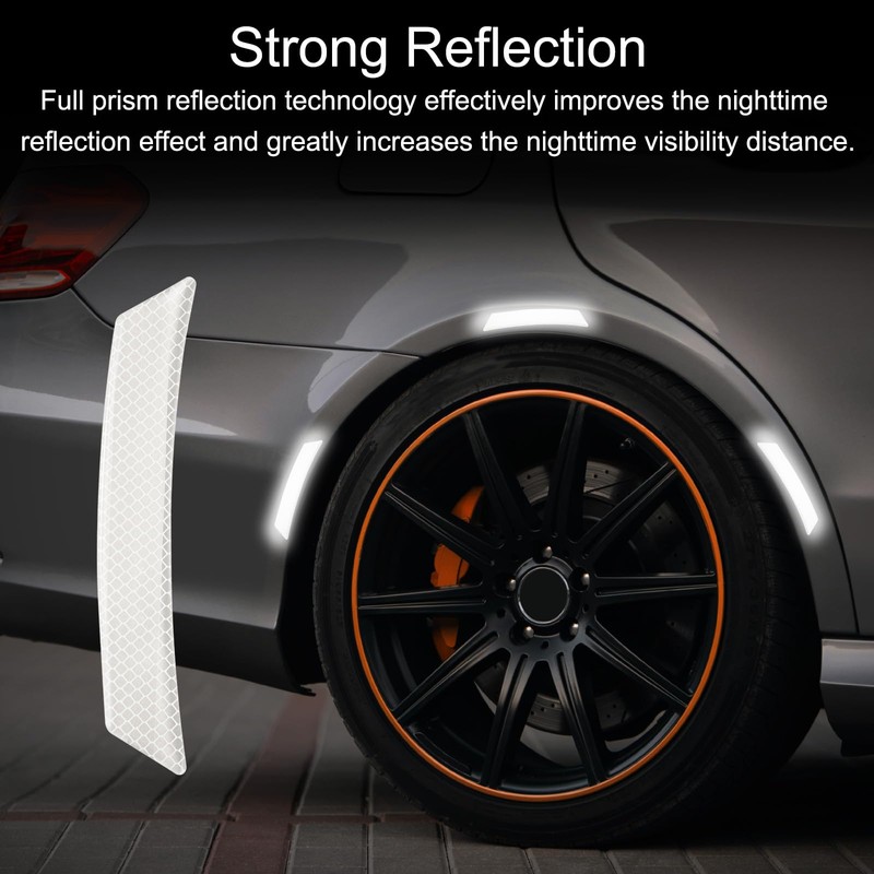 • Size - Total Size: 167 x 25mm / 6.6" x 1"(L*W), Thickness: 1.5mm / 0.06", Color: White. Package Content: 4pcs x Car Reflective Trim.