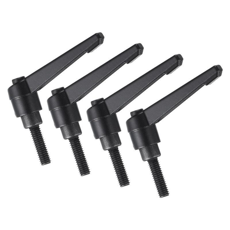 sourcing map 4pcs Clamping Lever Handles, M6 x 20mm Black Oxide Carbon Steel Threaded Male Stud, Adjustable Handles Locking Quick Release Ratchet Push Button Bolt Knobs, Black