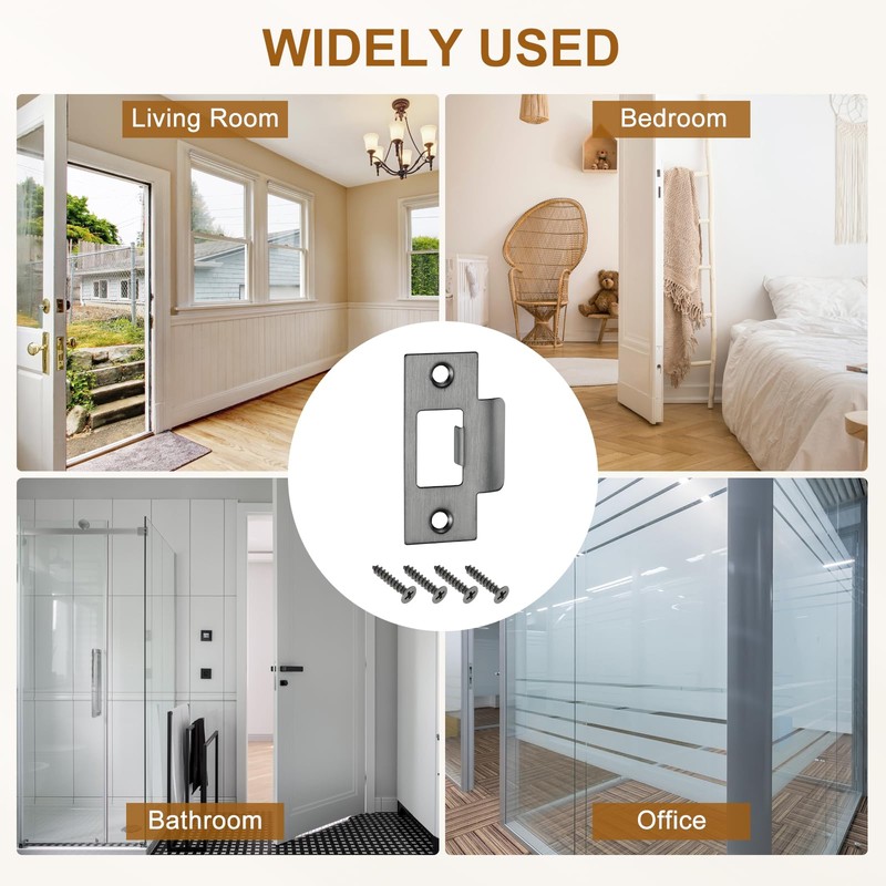 - [Compatibility] - Our door latch strike plates are available in different sizes and configurations to match various latch systems. It is essential to choose a strike plate suitable to the specific latch type and door dimensions to ensure proper installation and optimal performance.