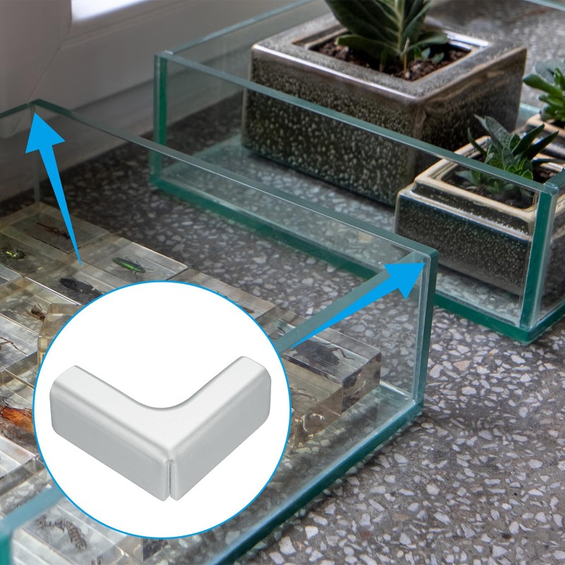 sourcing map 4Pcs Glass Fixing Clip, for 8-10mm L-Shaped Glass Combination Fixing Bracket, Aluminum Alloy Reinforced Clip Clamp for Glass Display Cabinet, Fish Tank (Silver Tone)