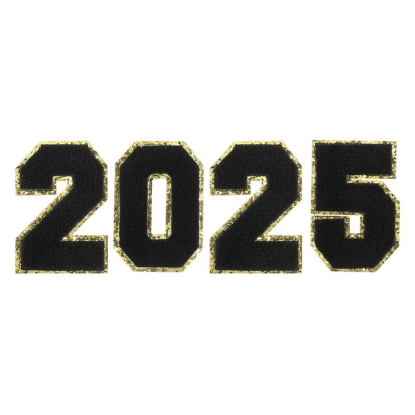 sourcing map 4pcs Glitters Chenille Number Patches 8 cm / 3 Inch Iron-On Embroidery Numbers for Team Uniforms Sports T-Shirts Hats Bags (Black, Number 2025)