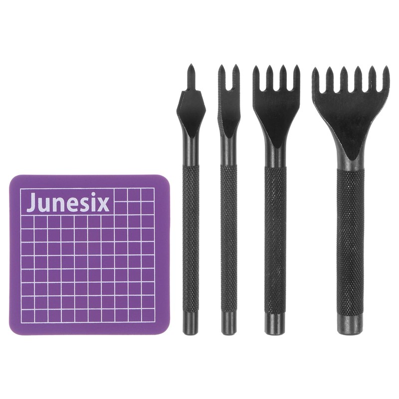 sourcing map 4pcs Leather Prong Punch 5mm 1/2/4/6 Prong Diamond Lacing High Carbon Steel Leather Stitching Punch Chisel Hole Punches Punching with 6mm Cutting Mat for Leathercraft DIY